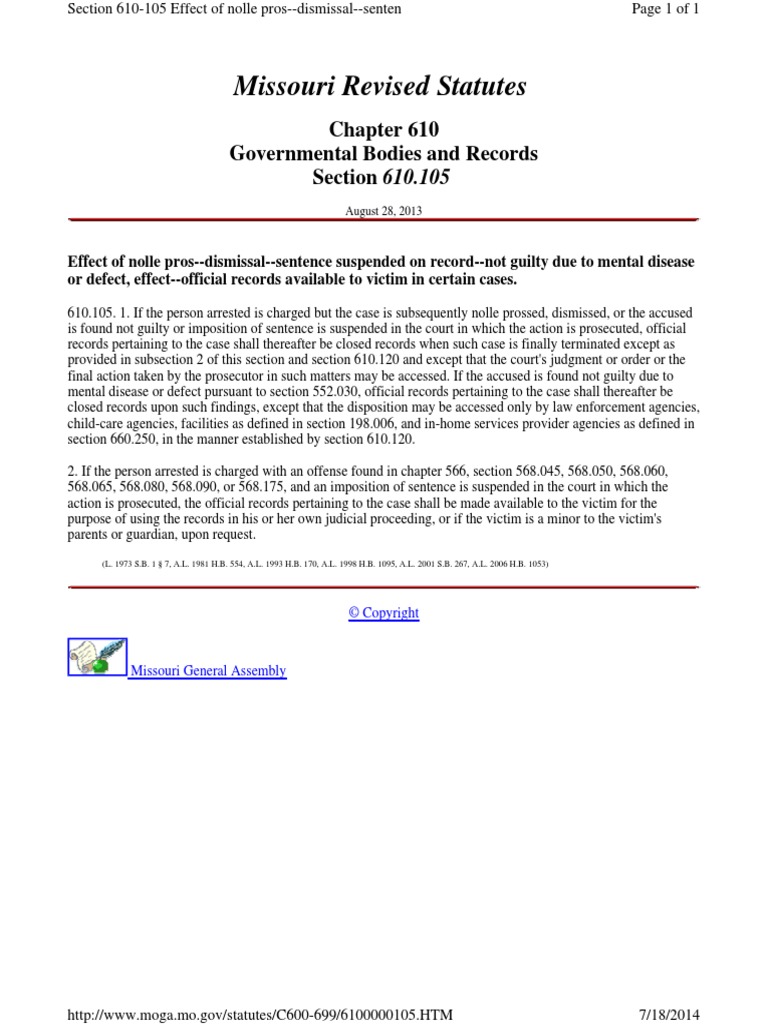 Missouri Revised Statutes 610.105 PDF Prosecutor Legal Procedure